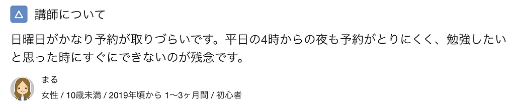 つまり、2019年〜2020年頃は講師が少なく予約が取りづらい状況にあったということがわかりました。