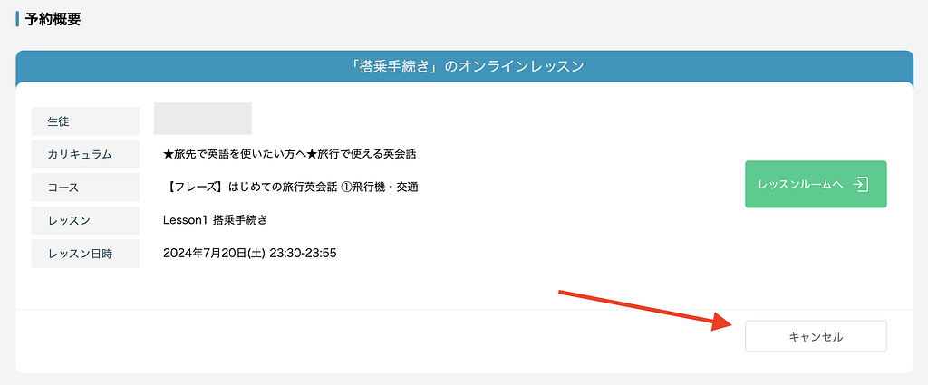 「予約概要」の欄の「キャンセル」をクリックします。