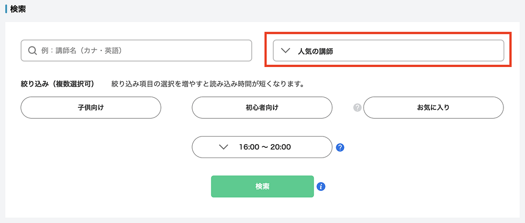 人気講師やお気に入り講師にこだわりすぎず、その都度適切な講師を選んでいく方がおすすめになります。