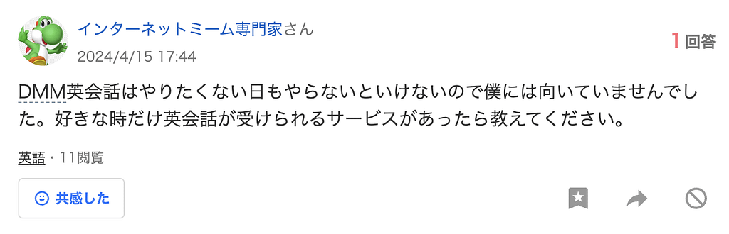 「これ聞いてeKnow?」の凄いところは、DMM英会話以外のことも相談できること。