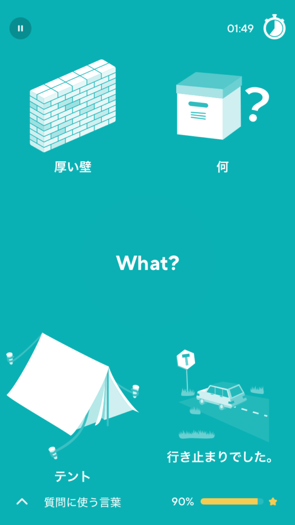 レベルが上がるにつれて、絵と意味の結びつきが曖昧になり、結局日本語訳に頼らざるを得ない場面が増えてきます。