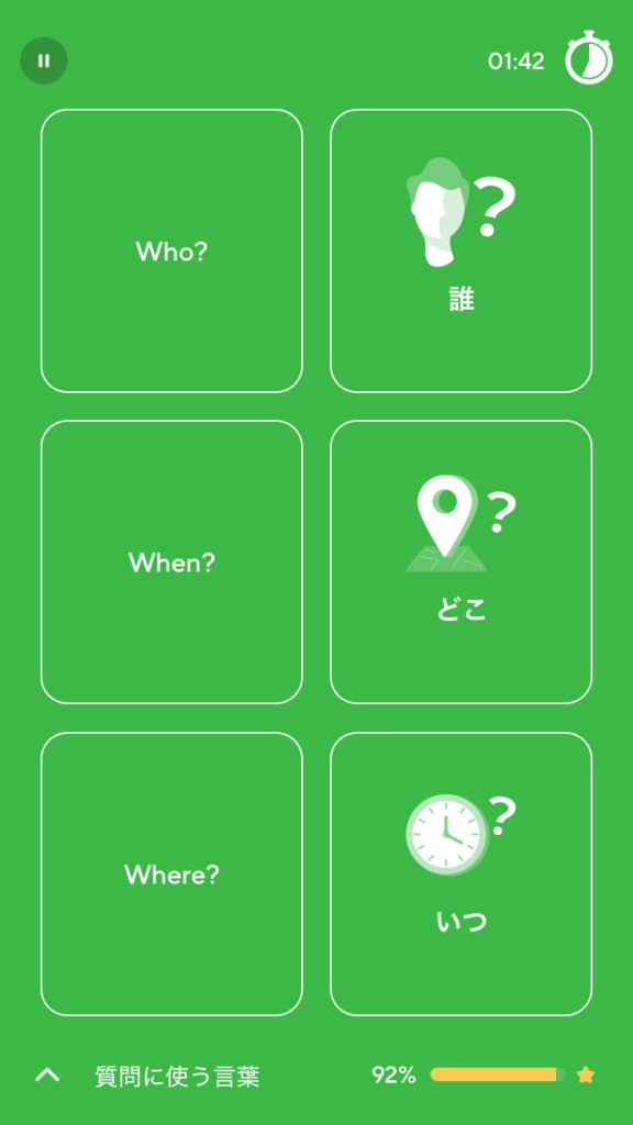 Dropsは「名詞」や「動詞」などの単語を覚えることに特化しており、文章の組み立て方や文法ルールは一切学べません。