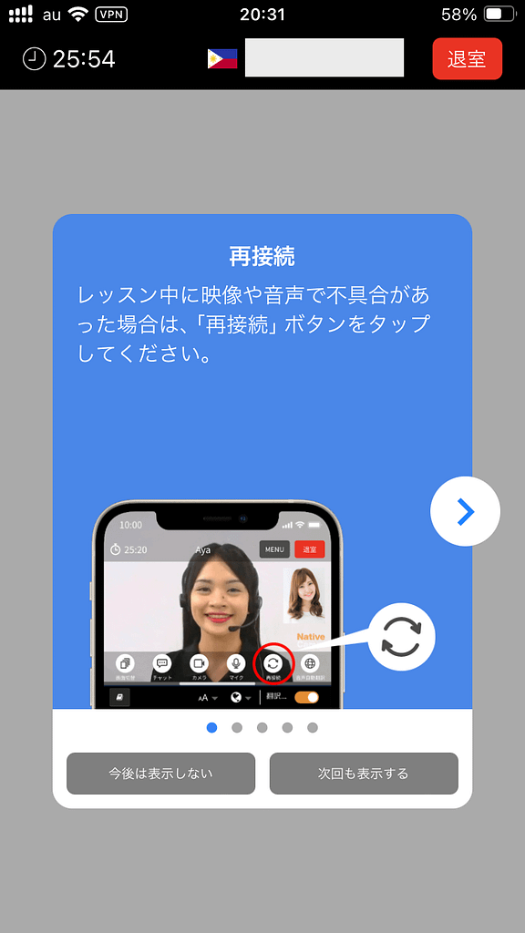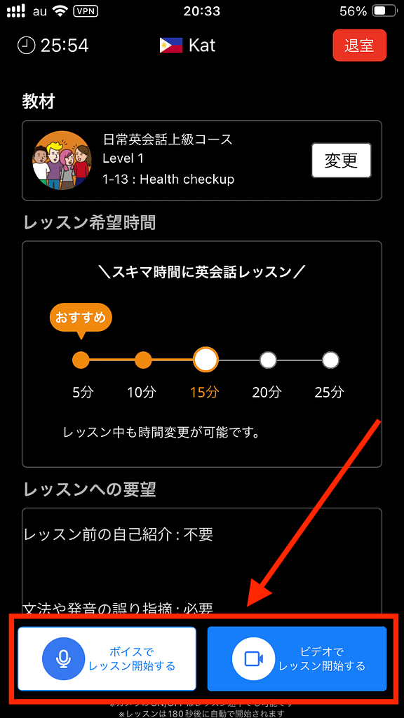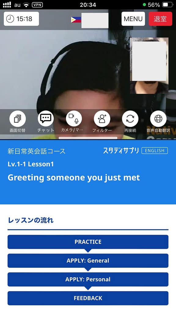 アプリを使うときは、自分の見やすい画面に切り替えてレッスンを受けるのがおすすめになります。