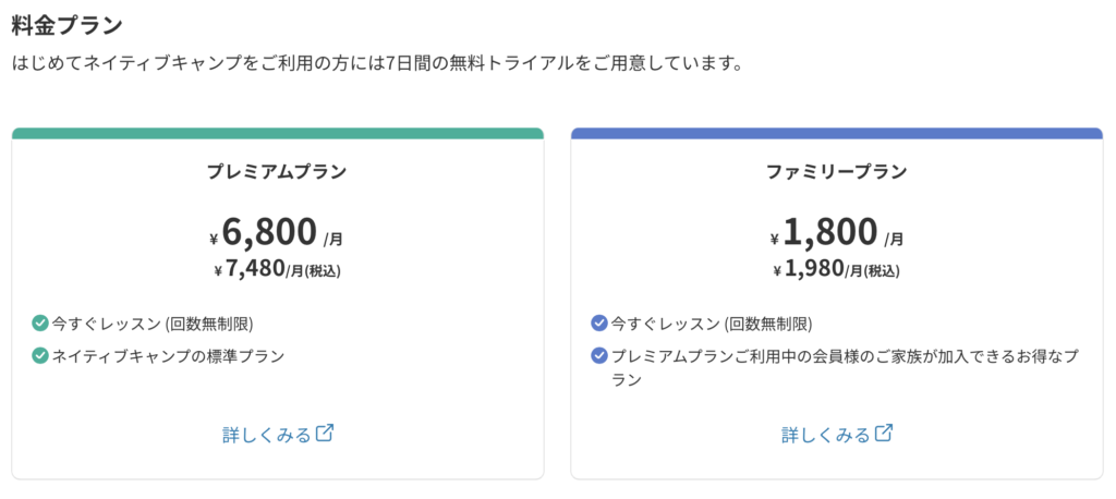 プレミアムプランおよびファミリープランに加入している方は、今すぐレッスンを基本としています。
