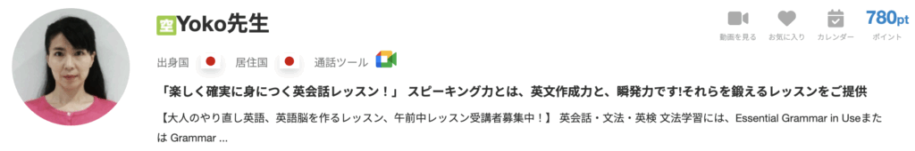 基本的に中学以上の方が対象とのことですので、中学生以上で英会話を習いたい方におすすめな講師となります。